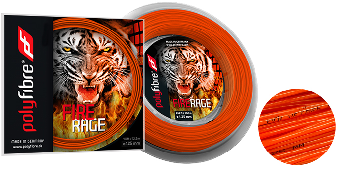 Die von Polyfibre entwickelte Standardized Molecular Distribution (SMD) Technologie in Kombination mit einer Corona-Beschichtung verleihen der Saite eine außergewöhnliche Oberflächenstabilität. Dadurch kerbt die Saite nicht so schnell ein und sorgt für einen hohen Spin-Effekt (Snapback) in den Schlägen, so dass die Saiten nicht verrutschen. Die Spieleigenschaften der "Fire Rage" bleiben über einen langen Zeitraum gleich.