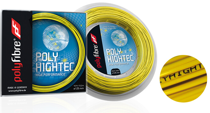Die Co-Polymersaite Polyfibre Poly Hightec zeichnet sich durch Konsistenz und hohe Elastizität aus und hebt sich deutlich von herkömmlichen Polyestersaiten ab. Ein Thermo-Coating erhöht eindeutig die Haltbarkeit und minimiert den Spannungsverlust, so dass die Spieleigenschaften bis zum Reißen konstant bleiben und eine gleichmäßige Kontrolle gewährleistet ist. Eine hervorragende, sehr armschonende Allroundsaite, die in dünnen Saitenstärken Elastizität und Beschleunigung beim Spielen bietet. Dickere Saitenstärken sorgen für mehr Kontrolle und Haltbarkeit.